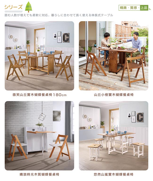 【C'est Chic】沐光森聆實木橢圓蝴蝶餐桌椅(一桌四椅)免安裝。發揮巧思與靈感,桌面大小可隨需求做調整,彈性的空間,更好的生活,佈置出您喜歡的居家風格。