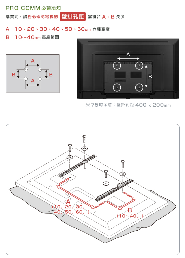 隨著時代日新月異,電視越做越大,然而因為房間格局的關係,不得已放棄了大電視。透過「壁掛式電視立架」的設計,適用電視尺寸 32~80 吋,不需要佔用大量安裝空間,依舊保持部屋寬敞。
