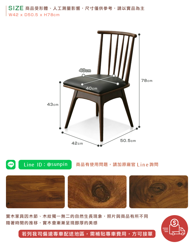 ・實木家具因木節、木紋獨一無二的自然生長現象,照片與商品有所不同。