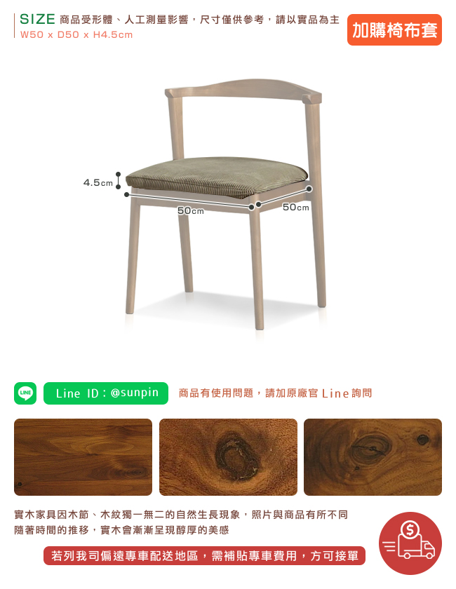 ・實木家具因木節、木紋獨一無二的自然生長現象,照片與商品有所不同。