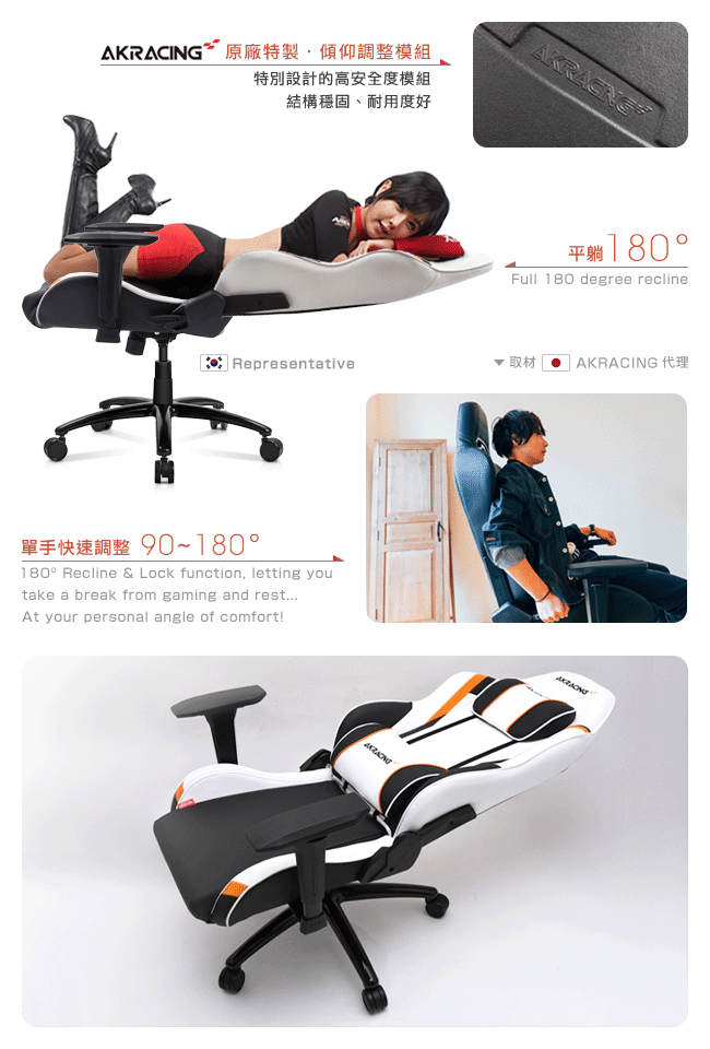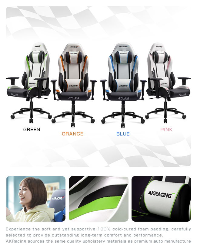 AKRACING 倡導時尚前衛,引領電競遊戲、超跑賽車、辦公等各領域的座椅設計潮流,注重新型、環保材質的引進。嚴格控制製作過程中的所有細節,完美融合現代科技理論與生產實踐。經過不斷的發展,AKRACING 擁有了一批極富創意的設計師,和技術精湛的專業製作團隊。