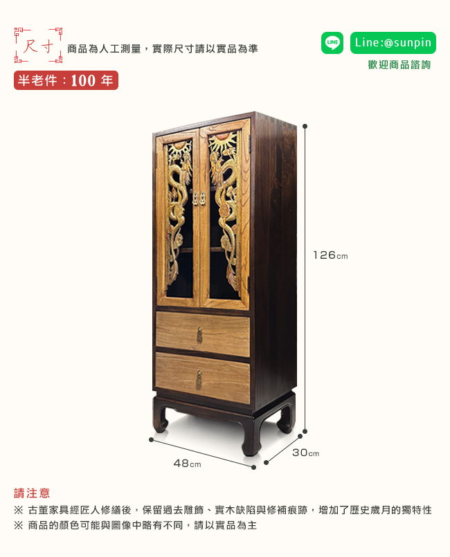 材質:花板樟木(100年歷史)、榆木
