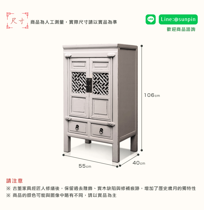 ・實木家具因木節、木紋獨一無二的自然生長現象,照片與商品有所不同。